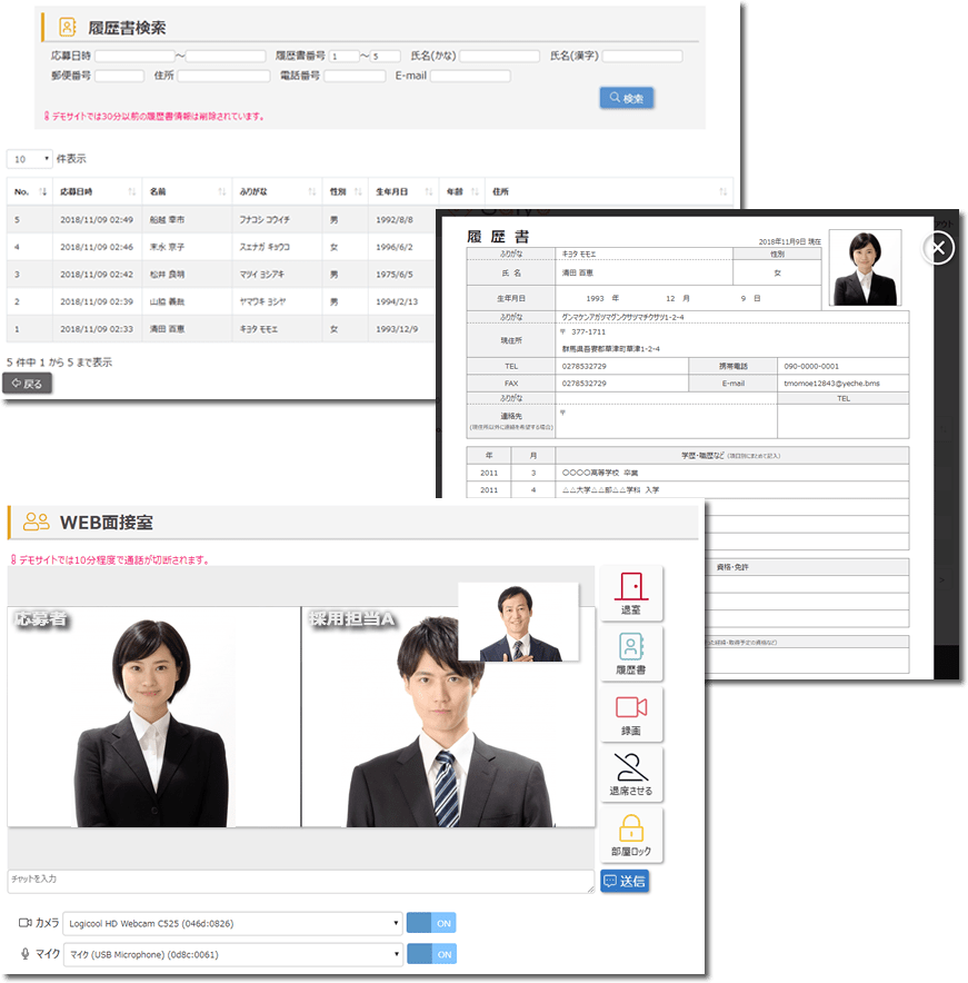 WEBブラウザ上でのビデオチャット技術を使用したオンライン面接で、