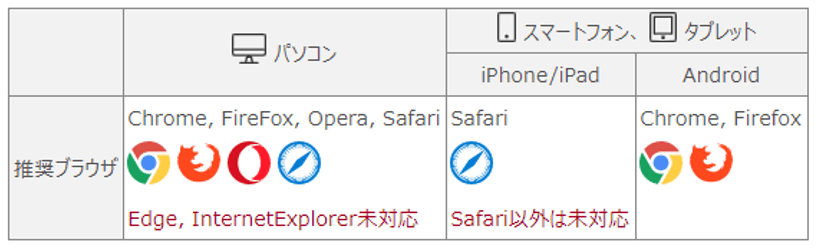 対応ブラウザの場合でも、パソコンやスマホの機種が古かったりブラウザのバージョンが古いと、ご利用になれない場合があります。
