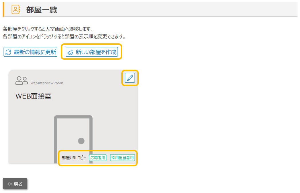 で、応募者側、採用担当側のそれぞれの部屋入り口のURLをコピーできます。