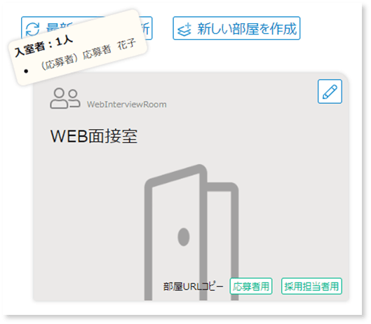 そのまま部屋情報をクリックするとWEB面接室入り口(後述)に遷移します。