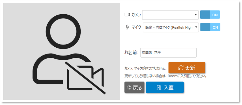 部屋に入る前にカメラ・マイクの接続状況を確認しください。