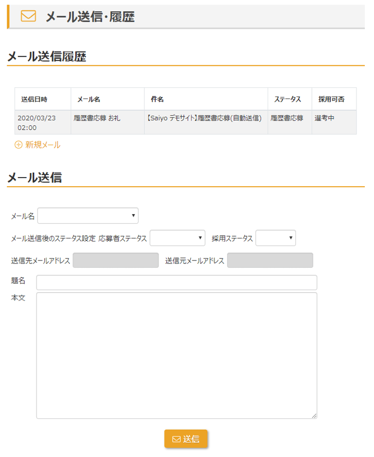 応募者へのメール送信履歴の確認、メール送信を行います。